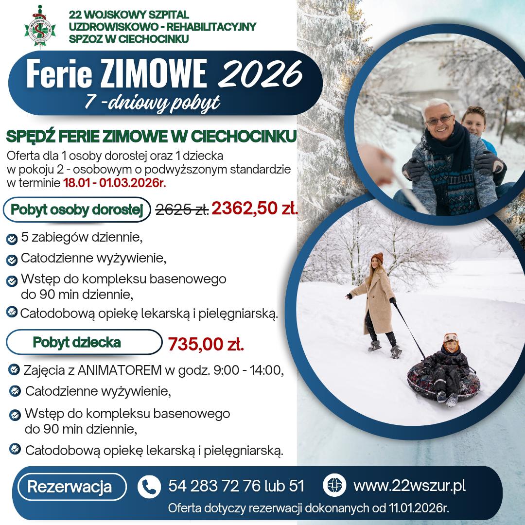 - Od 01.01.2026r. będzie pobierana opłata uzdrowiskowa w kwocie 6.67zł dziennie.