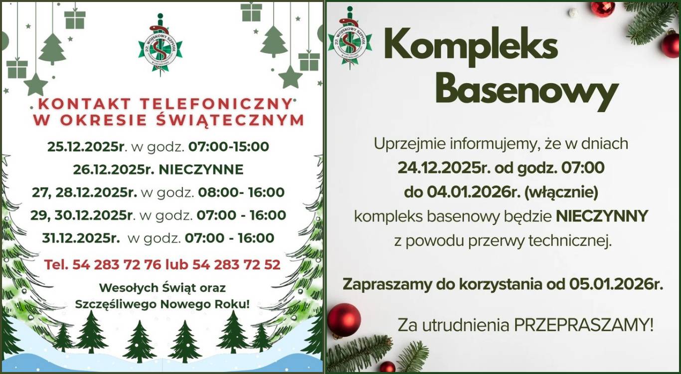 więcejInformujemy również, że punkt pobrań oraz informacja w sprawie kolejek oczekujących w dniach 29.12 - 31.12 są nieczynne. Zapraszamy w dniu 02.01.2026